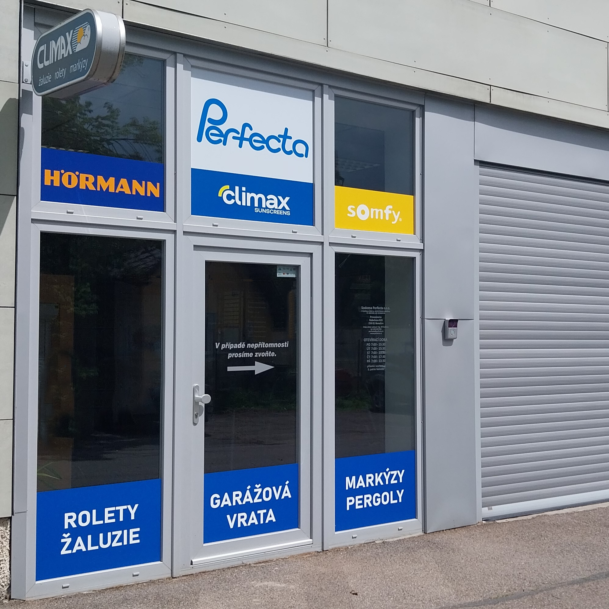 Naše hlavní zázemí najdete v Praze 4 – Modřanech, kde je vám k dispozici vzorková prodejna. Zde si můžete prohlédnout jednotlivé typy stínění i garážových vrat a poradit se s našimi odborníky.