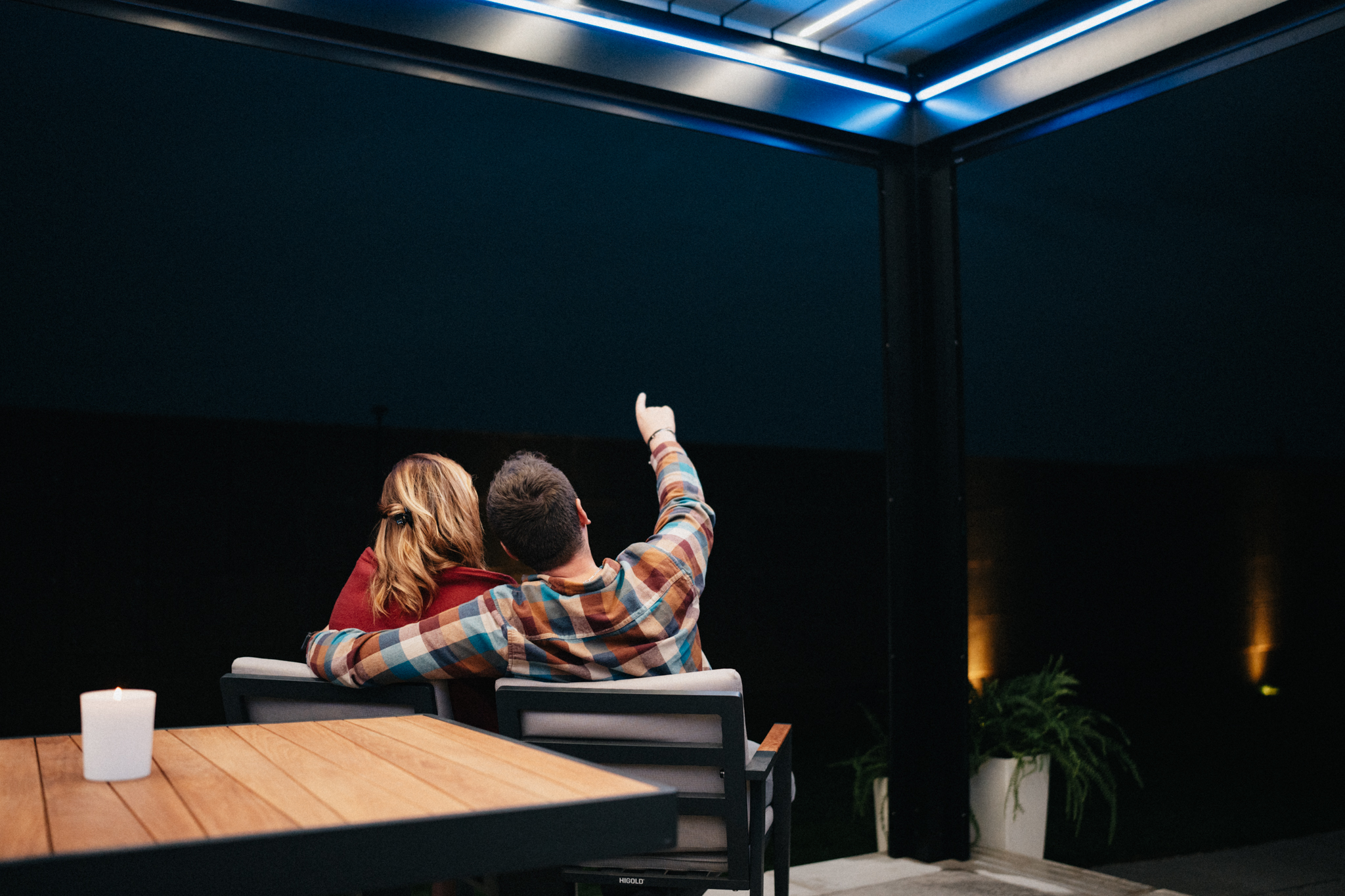 Toto výsuvné stínění si můžete opatřit i dodatečným osvětlení nebo výsuvným volánem. Klesající slunce ani noční tma vám z komfortu neuberou.
